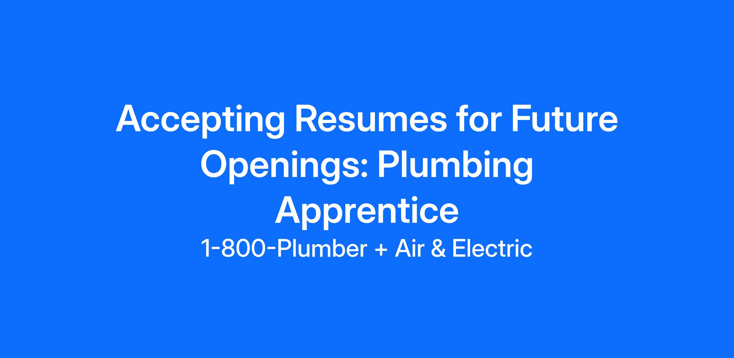 1-800-Plumber +Air & Electric is looking for a hard driven career focused apprentice in residential, with no experience needed!!!!