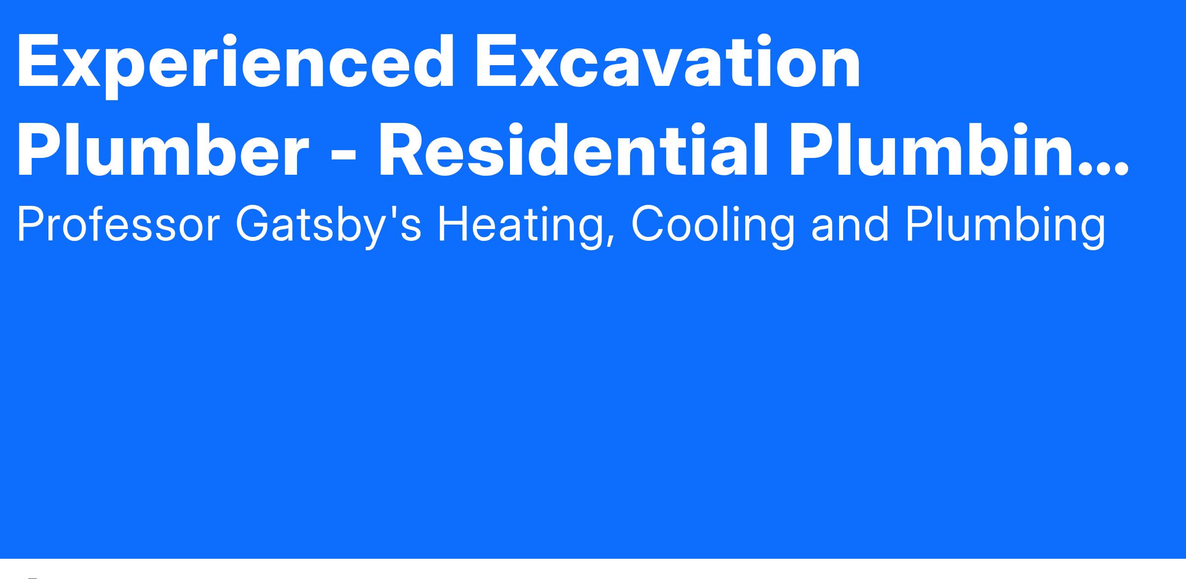 ABOUT THIS EXPERIENCED EXCAVATION PLUMBER - RESIDENTIAL PLUMBING TECH JOB: