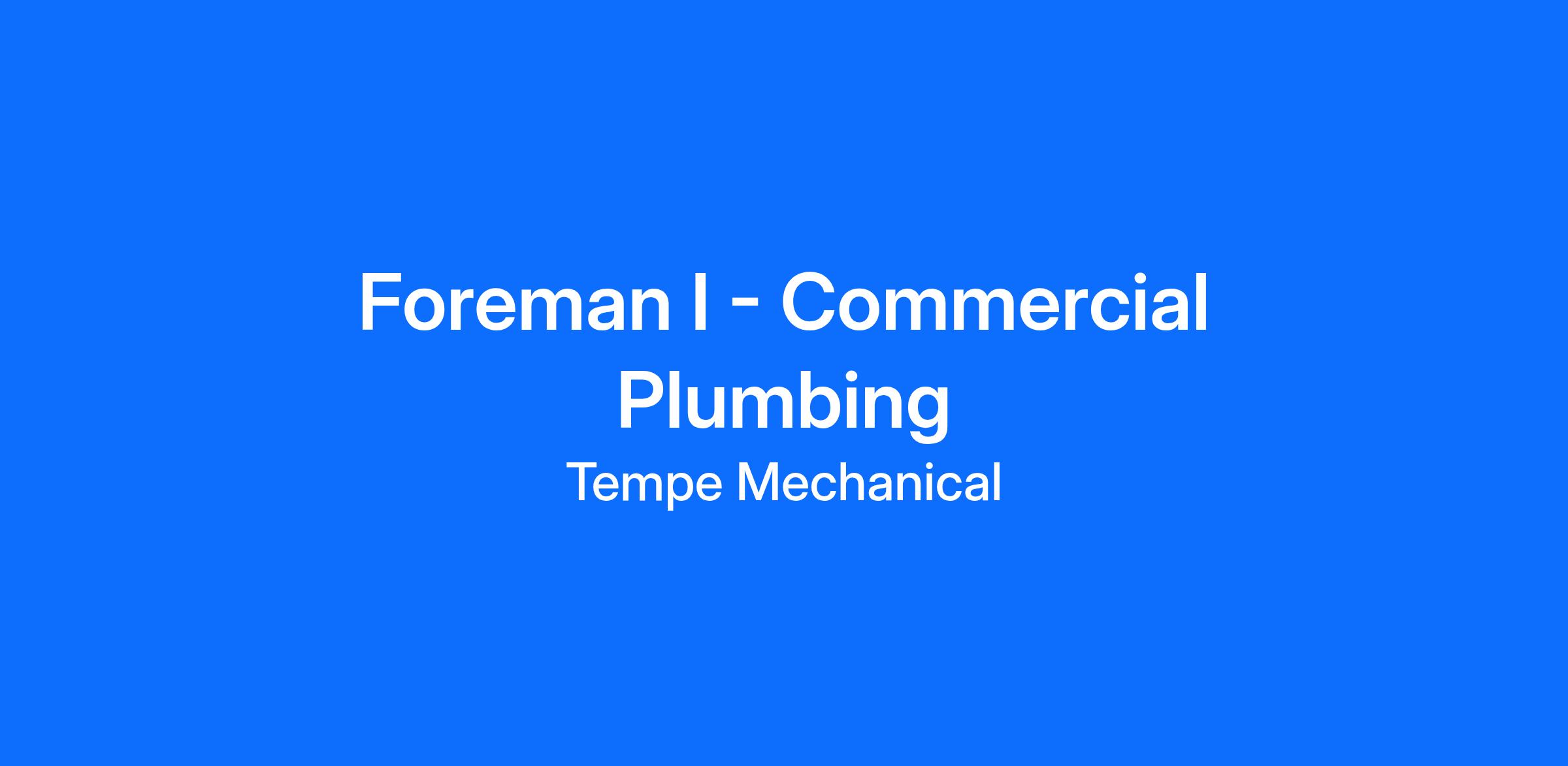 Job Title: Foreman I - Commercial Plumbing