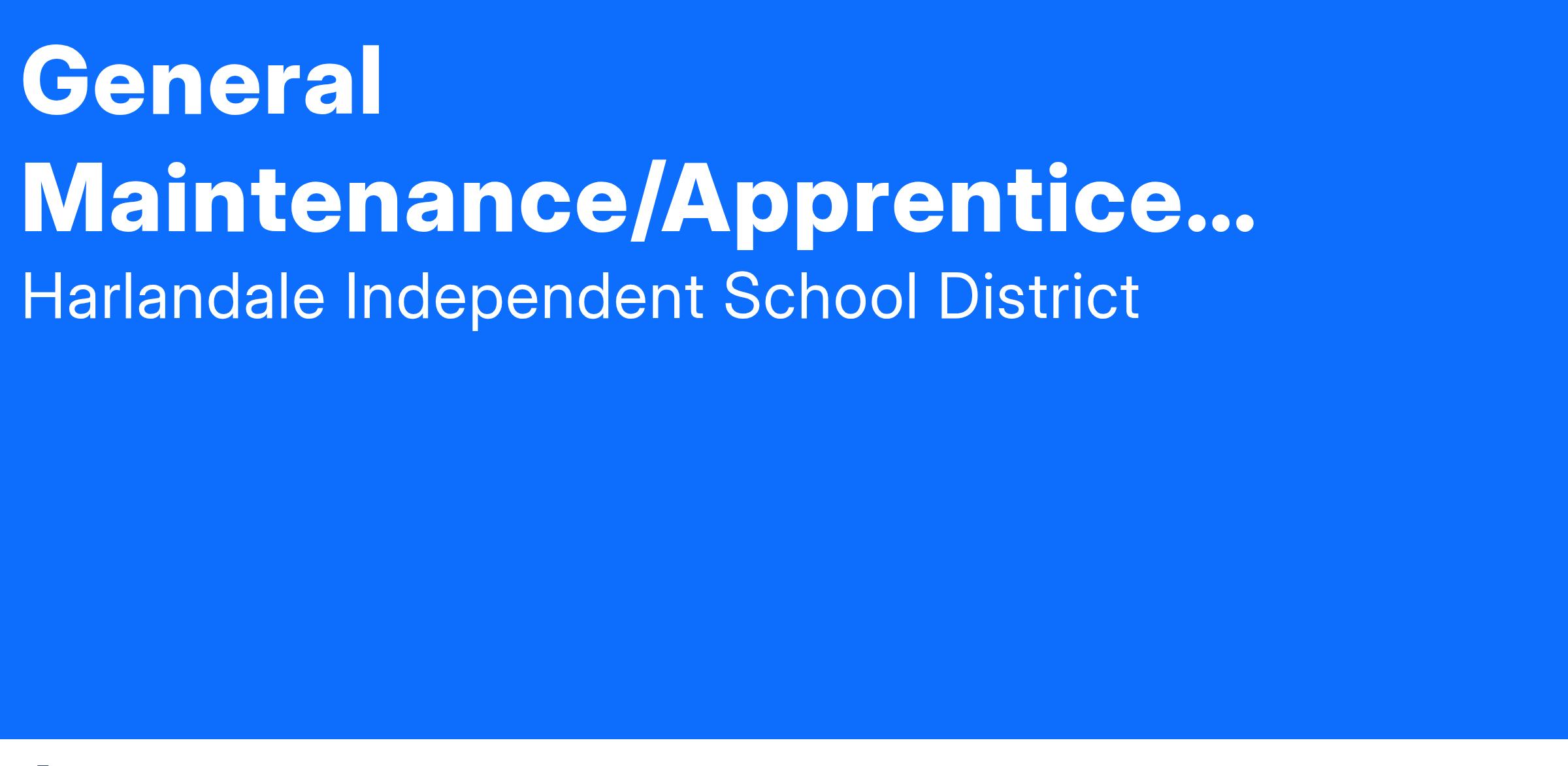 Job Title: General Maintenance/Apprentice Plumber