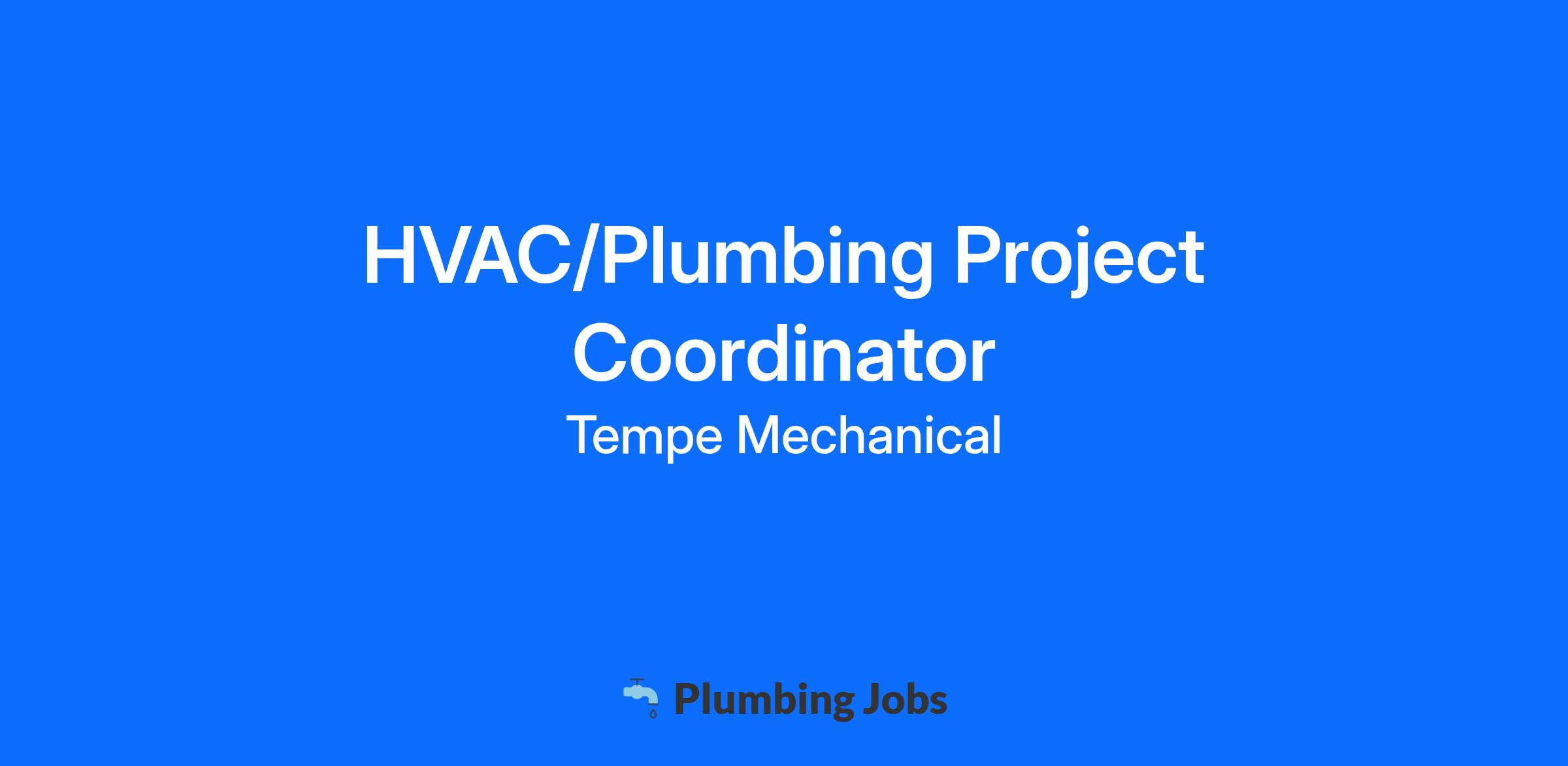 - Minimum of one year in HVAC/Plumbing Project Coordination preferred.