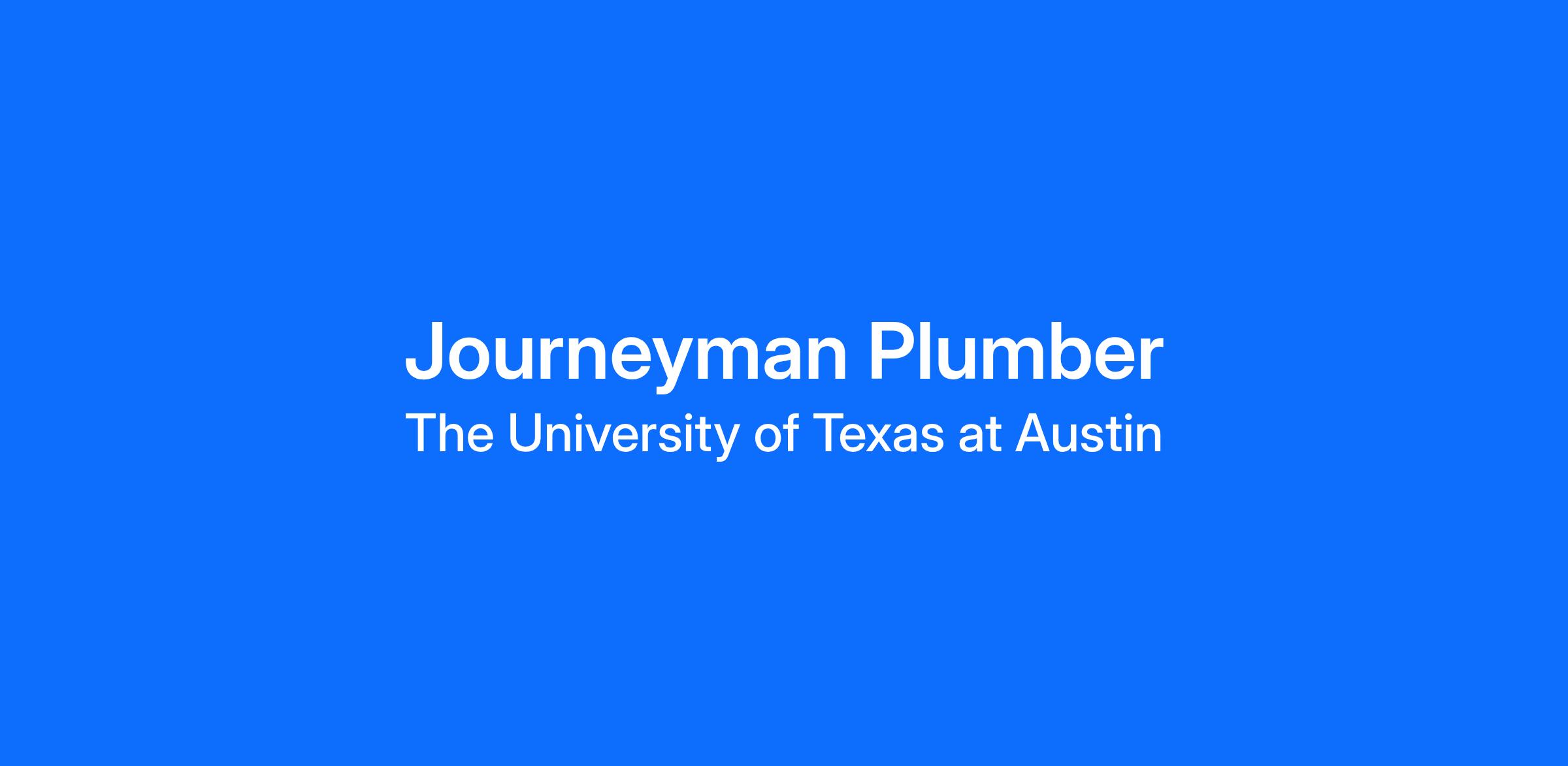 The University of Texas at Austin's Planning, Design and Construction team seeks an individual to serve as a Journeyman Plumber in our Mechanical Shop. You’ll be working for a university that is internationally recognized for our academic programs and research. If you’re the type of person who wants to know your work has meaning and impact, you’ll like working in our department and for UT Austin. Our team delivers a world-class campus, student, and innovation experience through operational excellence. UT Austin provides an outstanding benefits package, including but not limited to: