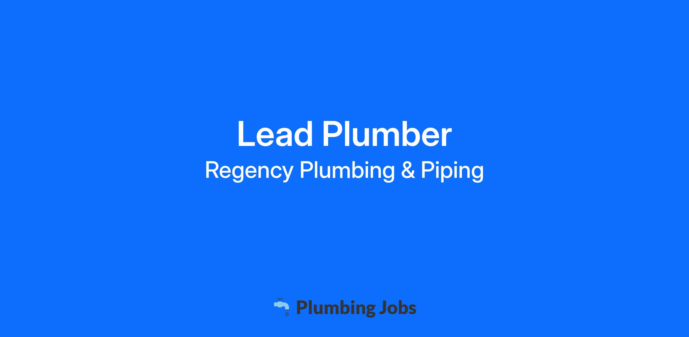 Regency Plumbing & Piping, Inc. is currently hiring for a full-time Lead Plumber to lead a plumbing team installing water, waste, vent, and compressed air systems in the Orange, CA area. This plumbing position typically works 5:30 AM to 2:00 PM. We pay our Lead Plumbers a competitive wage of $30.00 - $50.00+/hour.