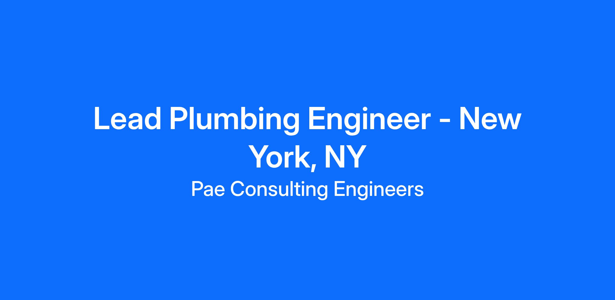 PAE is looking for a Lead Plumbing Engineer to guide plumbing and fire protection system design from concept through construction. This role oversees technical deliverables including calculations, drawings, specifications, and cost opinions while coordinating closely with other disciplines and ensuring projects meet budget, schedule, and quality standards. Responsibilities include directing project teams, performing site visits, updating specifications, supporting company standards, and clearly communicating design options to diverse stakeholders. Qualified candidates bring a bachelor’s degree or equivalent experience, 4+ years of plumbing design experience, strong knowledge of plumbing codes (UPC, IPC, NFPA, IBC), and proficiency in Revit/AutoCAD. A PE or CPD credential is preferred.