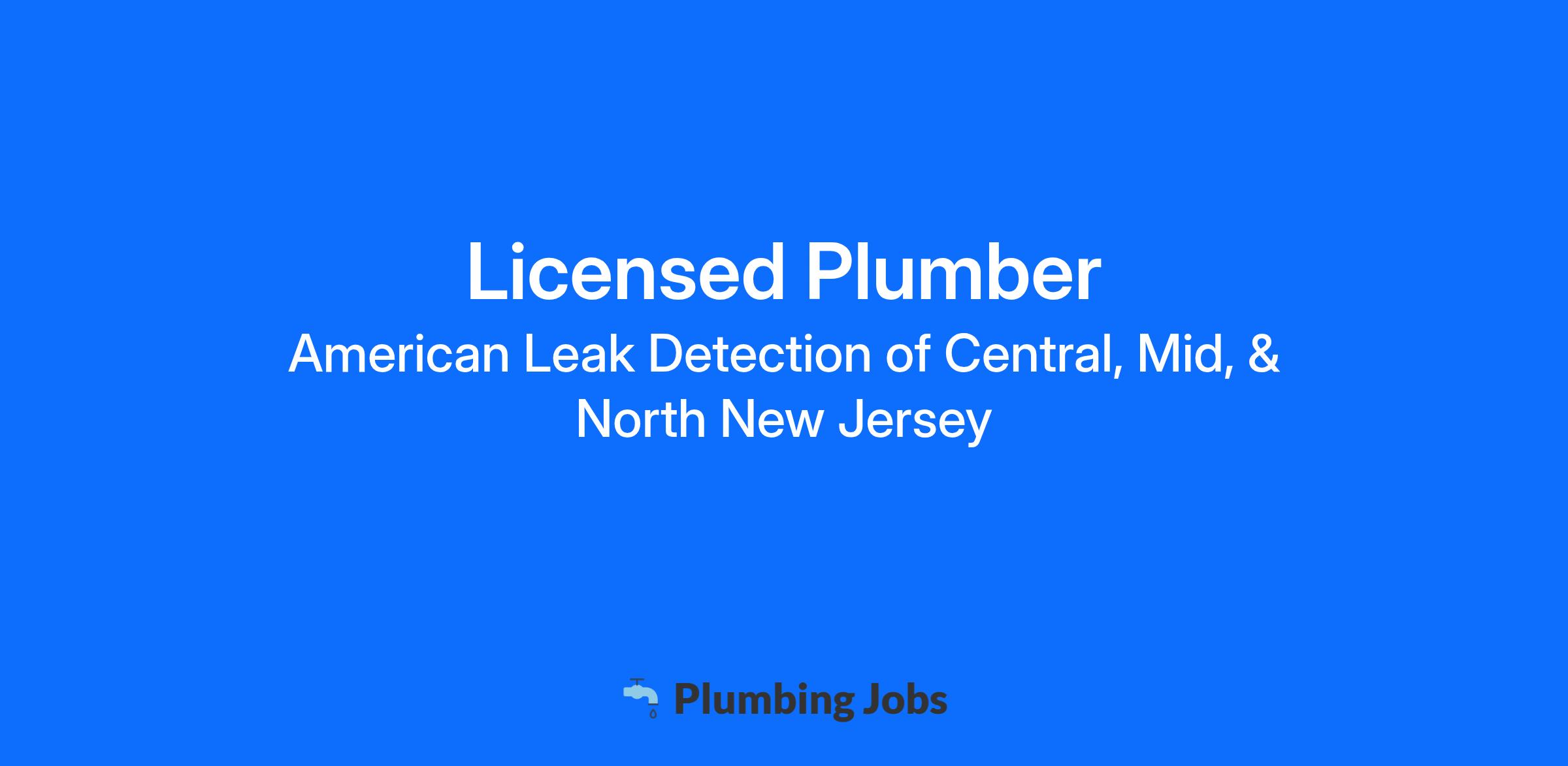 American Leak Detection is looking for a Licensed Plumber.