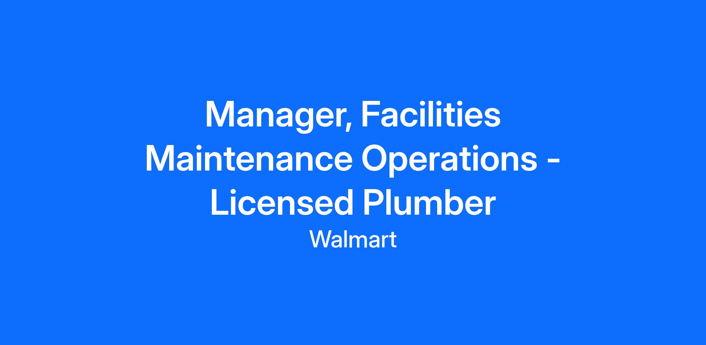 At Walmart, we're seeking a dynamic and experienced Licensed Manager, Facilities Maintenance Operations to oversee the predictive and preventative maintenance of our facilities within a regional area. In this role, you'll lead a team of dedicated technicians, ensuring our buildings operate efficiently and sustainably while providing a safe and comfortable environment for our associates and customers.