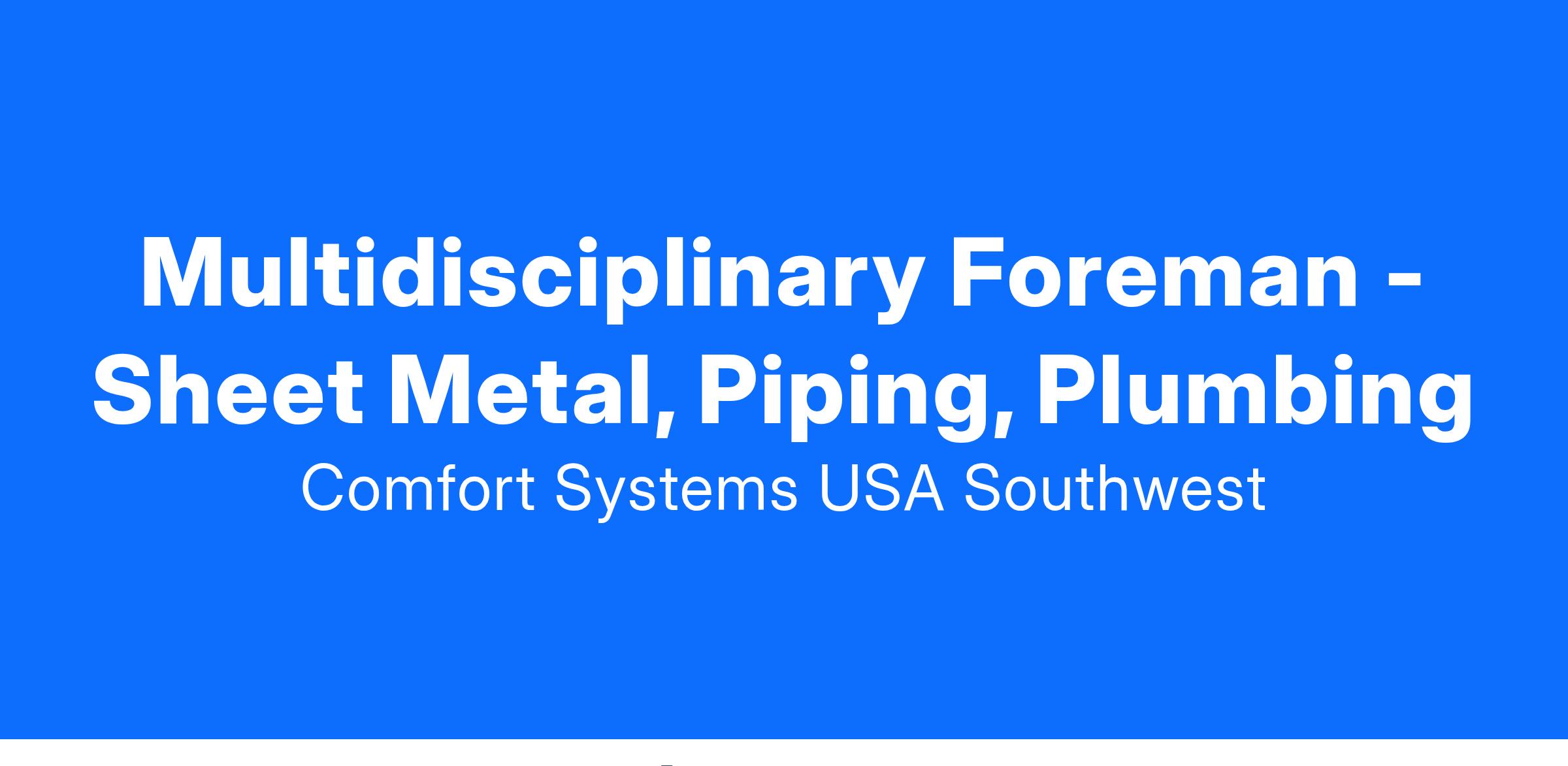 Are you a versatile and skilled Foreman in the realms of sheet metal, piping, or plumbing? Are you adept at navigating diverse projects, from installations to repairs, in various facilities?