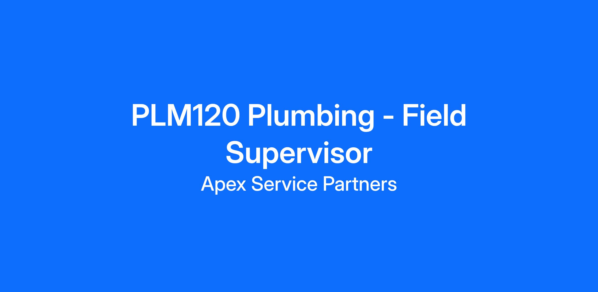Plumbing Supervisor that primarily supports plumbing technicians. This is a field-based position and can be a revenue-generating role.