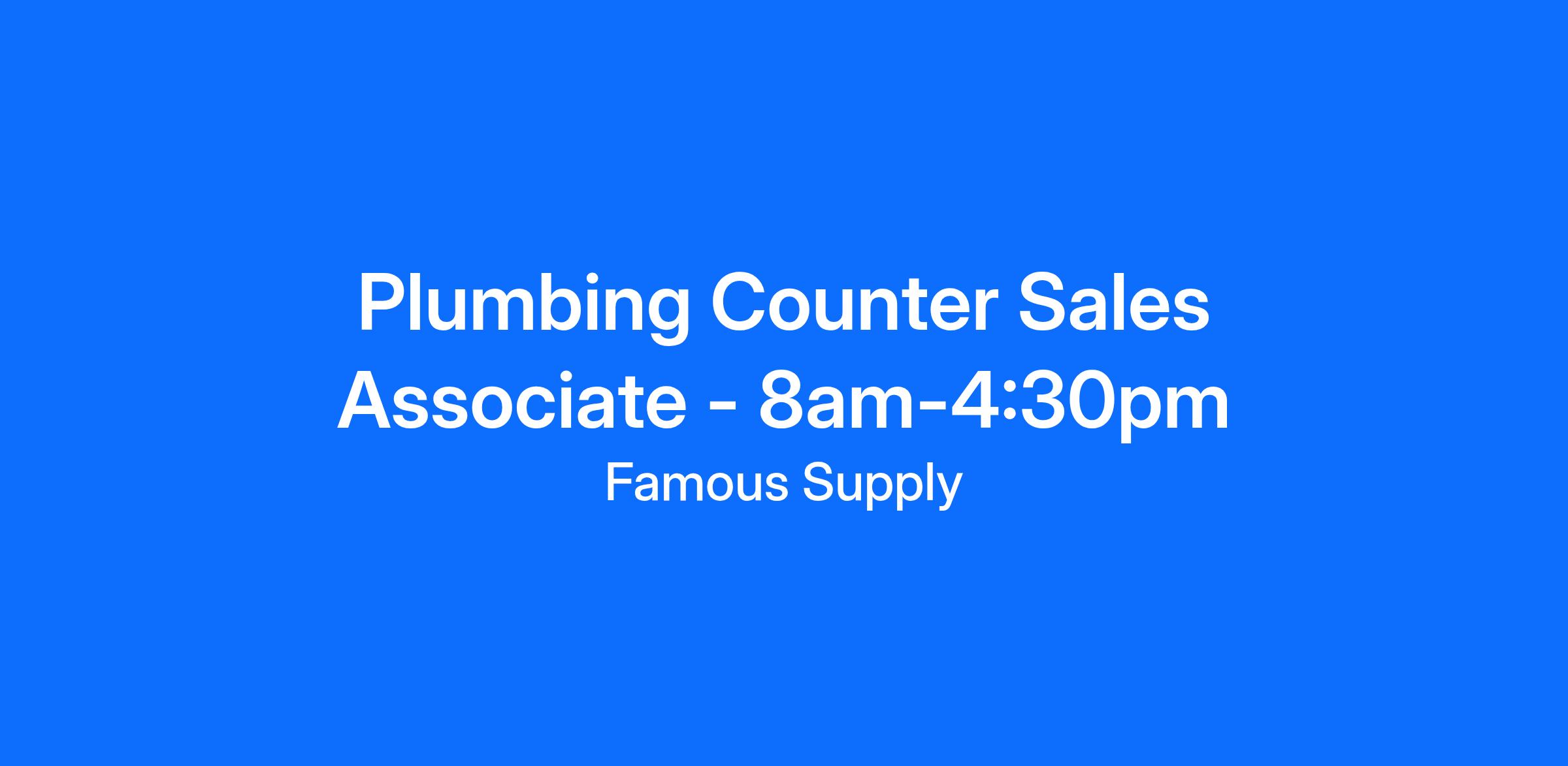 Our Roberts Road location is searching for a Counter Sales Associate that is friendly, outgoing, and excels in customer service. Counter Sales Associates provide superior service to customers at the Famous Supply branch, in person and via phone, the Famous Way. We specialize in plumbing and HVAC. Knowledge in these fields is preferred to keep our customer service efficient. Counter Sales Associates help contractor customers get the materials they need so they can get back to their job.