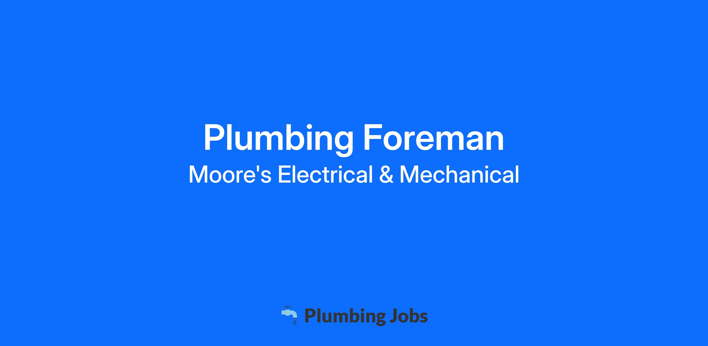 Position Overview: We are seeking a motivated and dedicated individual to join our Commercial Construction team as a Plumbing Foreman. In this role, you will serve as the essential part of successful plumbing system installs on our commercial construction projects as well as providing leadership and support on our sites. Foremen at Moore's are responsible for ensuring a quality install for our customers and doing so by promoting safety at all times.