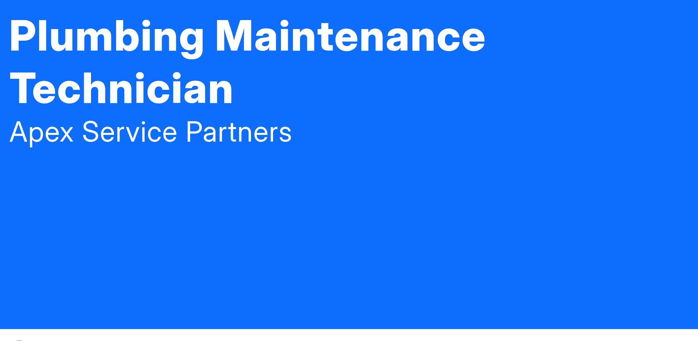 We offer a career, not just a job. Our Plumbing Maintenance Technicians enjoy: