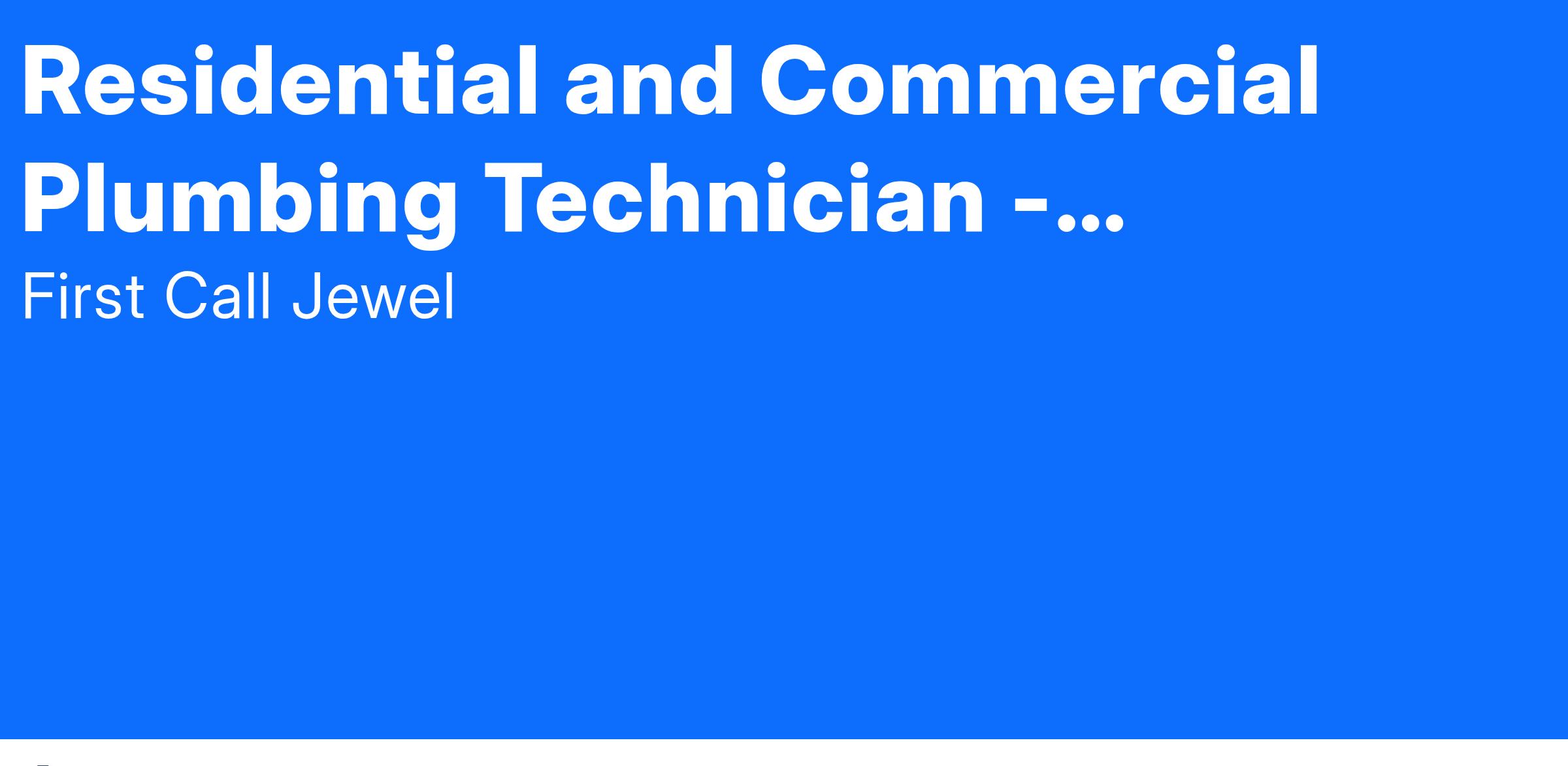 If you are excited about this Residential and Commercial Plumbing Technician - Journeyman Plumber opportunity, don't delay. Apply today!