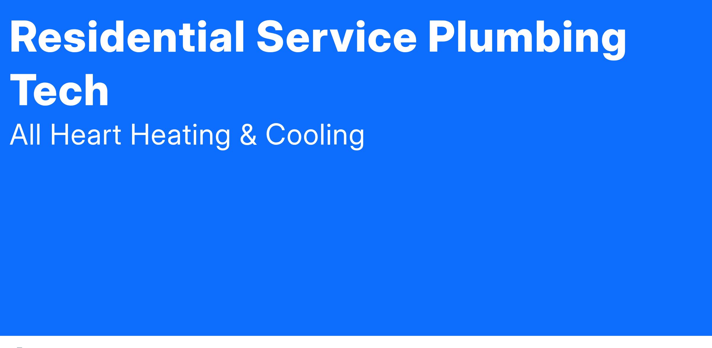 Apply now with our quick and easy 3-minute, mobile-friendly initial application process! We look forward to welcoming you to All Heart Heating & Cooling as a Residential Service Plumbing Tech!