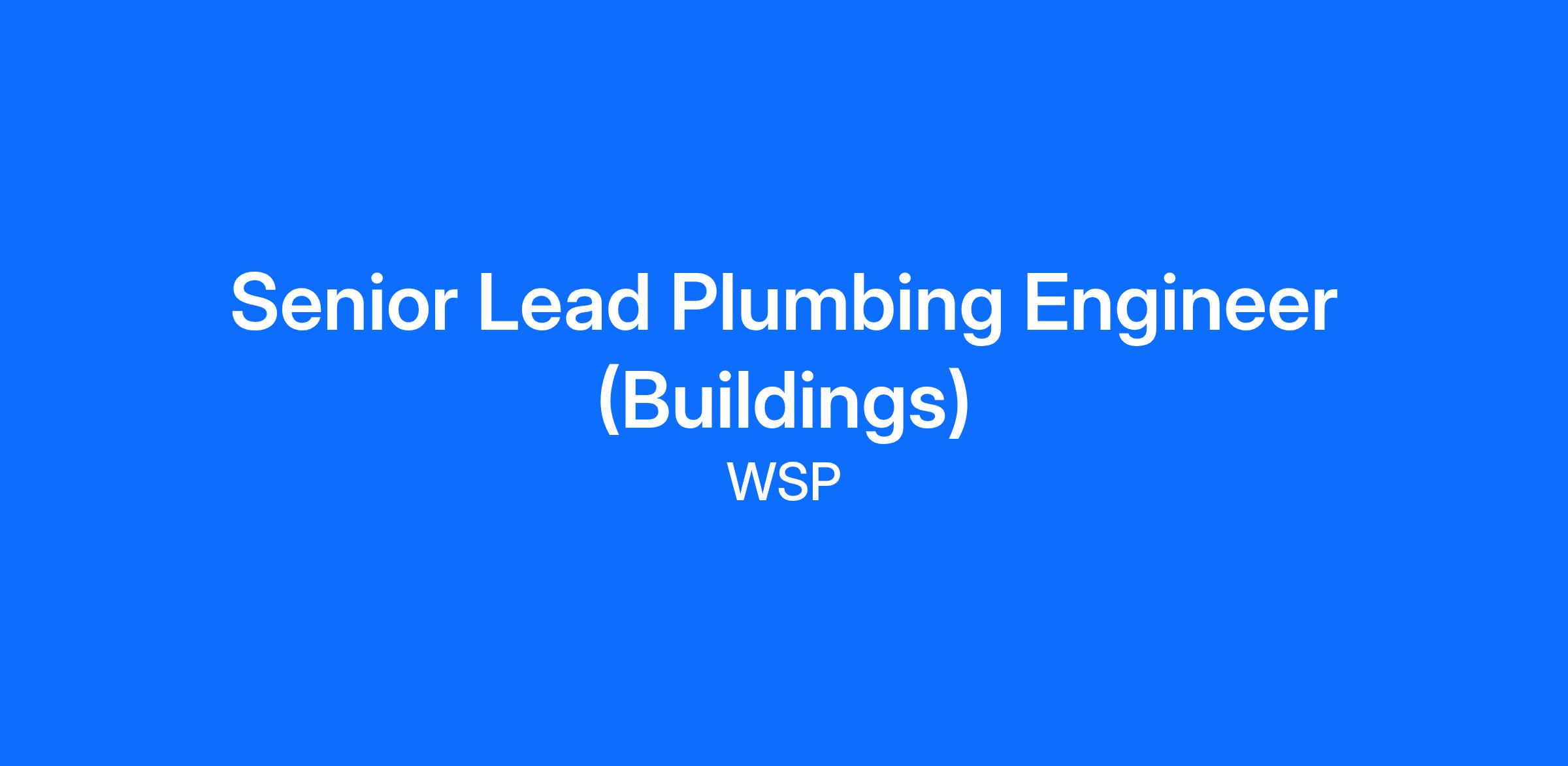 WSP is currently initiating a search for a Senior Lead Plumbing Engineer (Buildings) for our New York, NY office location to work with our Northeast Property & Buildings Region.