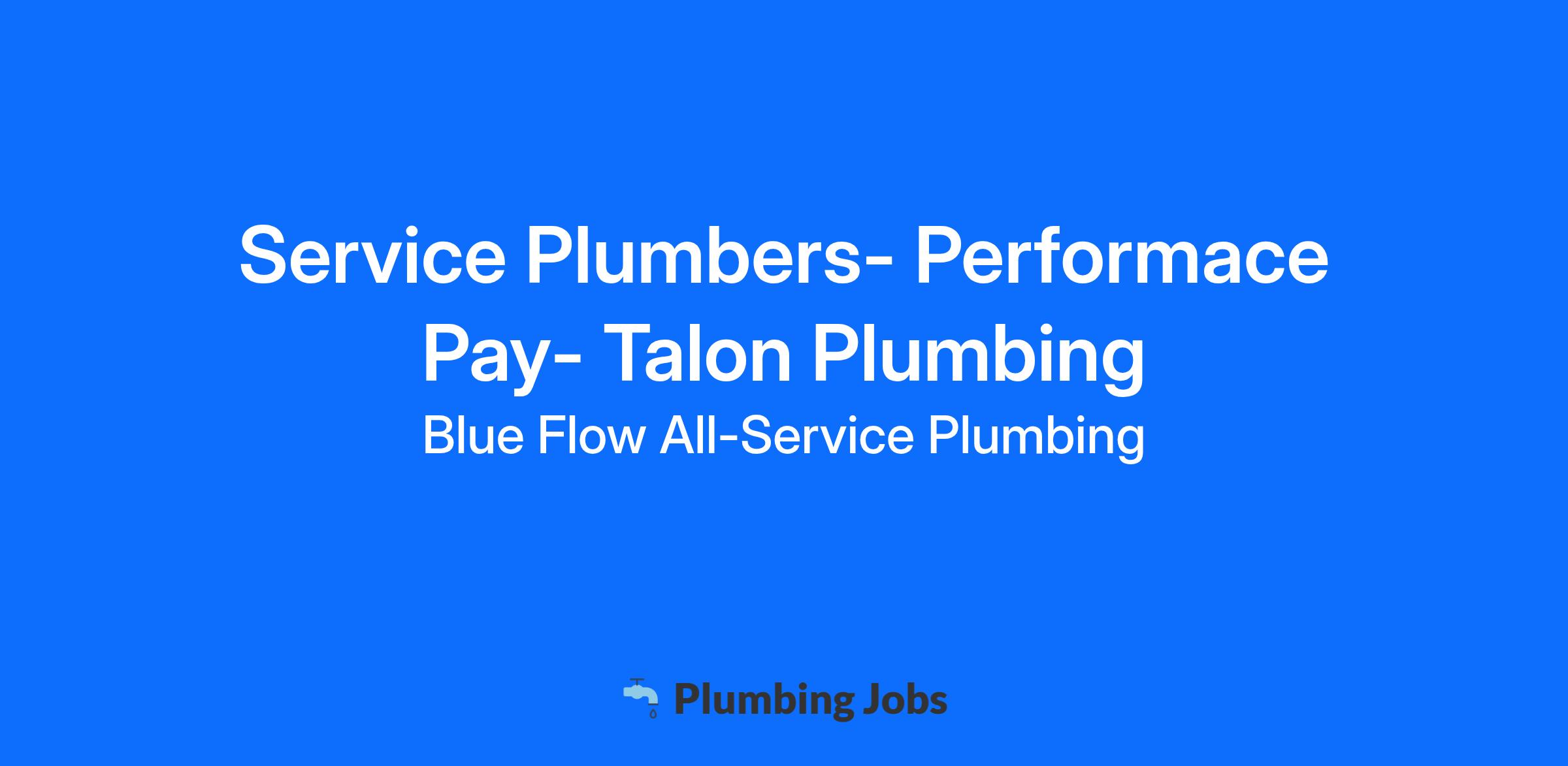 Service Plumber (Residential & Light Commercial)- Talon Plumbing Compensation: $80K–$140K+ annually (Performance Pay + Commission + Bonuses) Why Join Us? At Talon Plumbing, we put our technicians first. We believe that when plumbers are supported, respected, and set up for success, customers receive the very best service. That’s why we provide steady year-round work along with top-tier pay and a culture built around character, growth, and opportunity. What We Offer