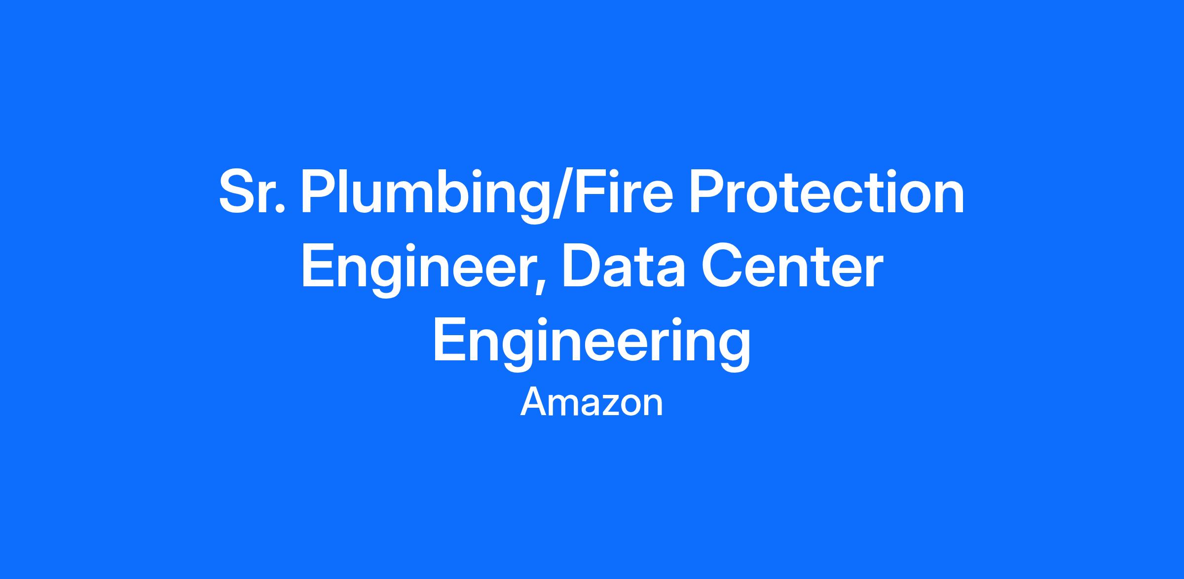Amazon Web Services is seeking Senior Plumbing/Fire Protection Engineers to become part of a global engineering team, responsible for the implementation and technical evaluation of our designs and the continuous innovation of our rapidly expanding data center footprint. Engineers at Amazon: Work to design resilient, cost effective systems. Are responsible for achieving a world-class uptime for our customers. They justify and communicate the technical decisions we make to Senior Management and work hard to drive continuous advancements and improvements with our designs. They drive change and define/design the systems our customers rely on. They have hands on design and field experience and have an understanding of the critical plumbing and fire-protection needs for a data center. As we grow, we are structuring our team to own more of our engineering in house.